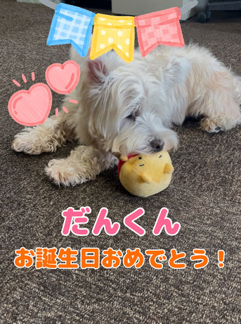 8月22日はだんくん4さいのお誕生日です!お誕生日おめでとう!!社員Tは魚肉ソーセージとプーさんのおもちゃをプレゼントしました!さっそくおもちゃで遊んでくれて嬉しい限りです(*^^*)これからもエーピーの社員犬としてよろしくね!