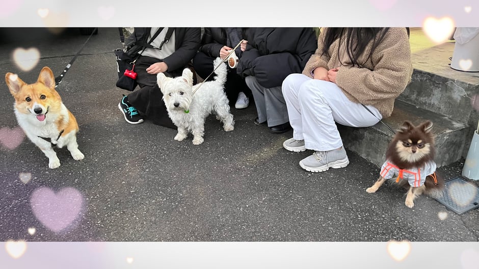 お友だちワンコのなるくん(コーギー)とらんちゃん(ポメラニアン)が遊びに来てくれました!! 大興奮で匂いをかぎまくるだんくん笑 なるくんはクッキーのおやつが大好きでおしりフリフリで、らんちゃんは小さくてふわふわで2匹ともとっても可愛いです♡ 今度は一緒に散歩に行きたいね♪